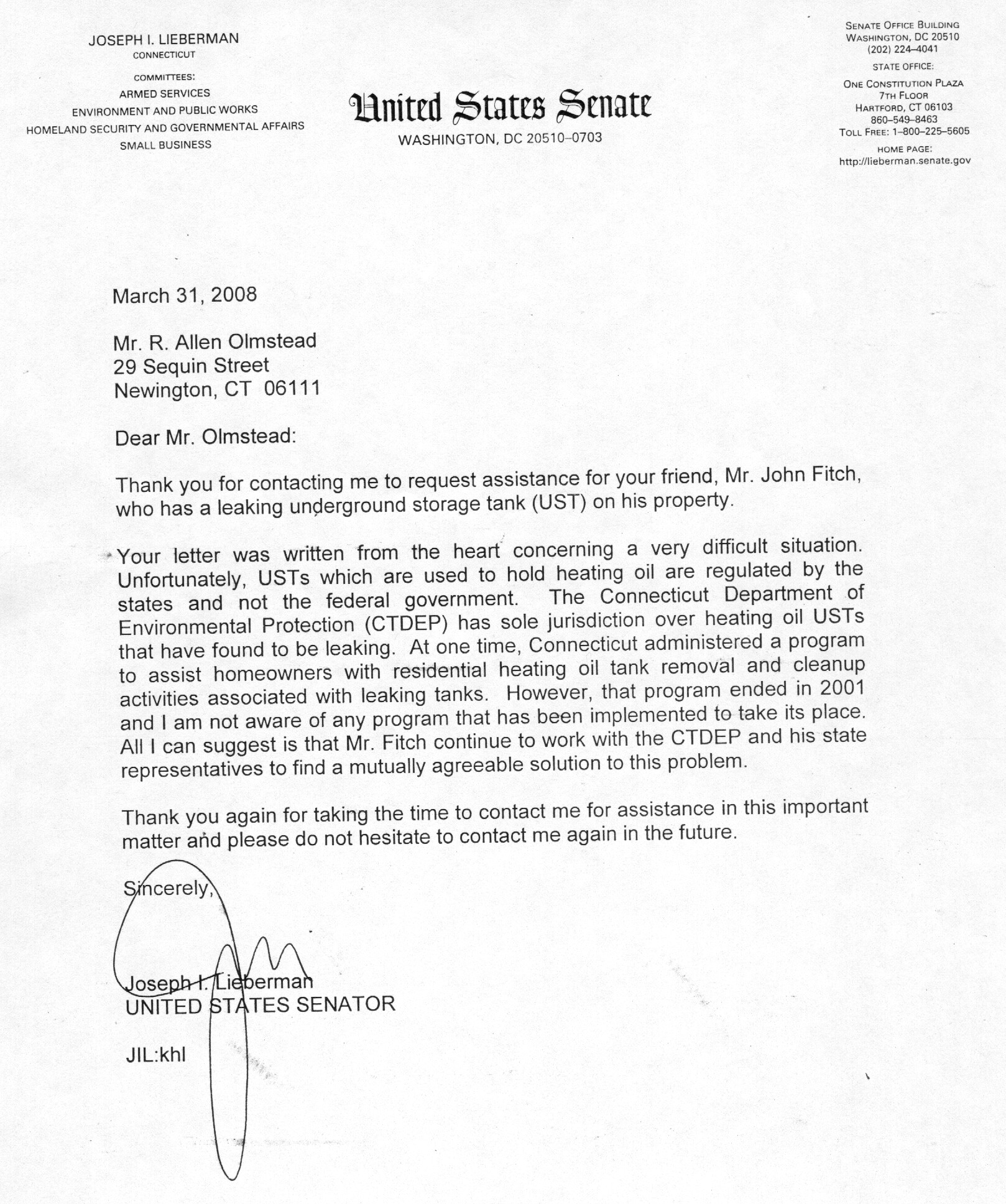 US Senator Joseph Lieberman here